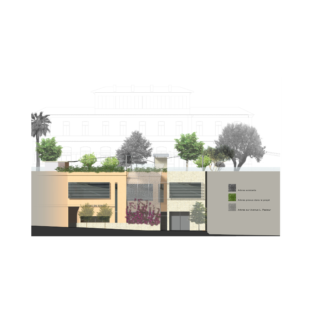 Les enfants de l’école du Stade bénéficient d’un cadre privilégié : chaque récréation se déroule dans une atmosphère baignée de soleil et ouverte sur la mer. Le projet se devait avant tout de préserver et sublimer cette qualité exceptionnelle.