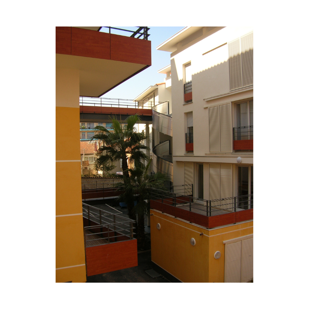 Il fallait faire coexister un habitat de quartier rue Berthelot ( 2/3 étages) et un immeuble de 7 étages avenue de Vallauris, 9 mètre plus haut. Une vie de quartier et une avenue passante.